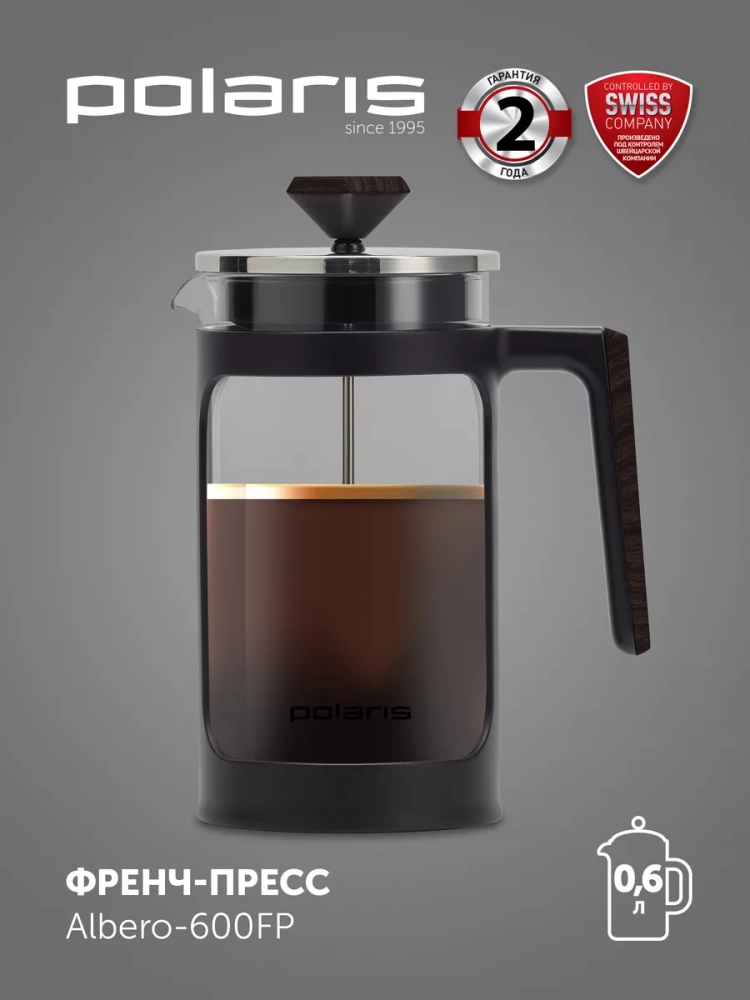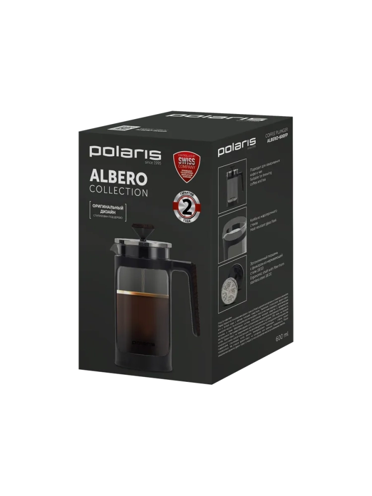 Профессиональный френч-пресс Polaris Albero 600FP - идеальный спутник в создании атмосферы комфорта, позволяющий насладиться чашечкой ароматного чая или кофе в уютной и расслабляющей обстановке вашего дома.
