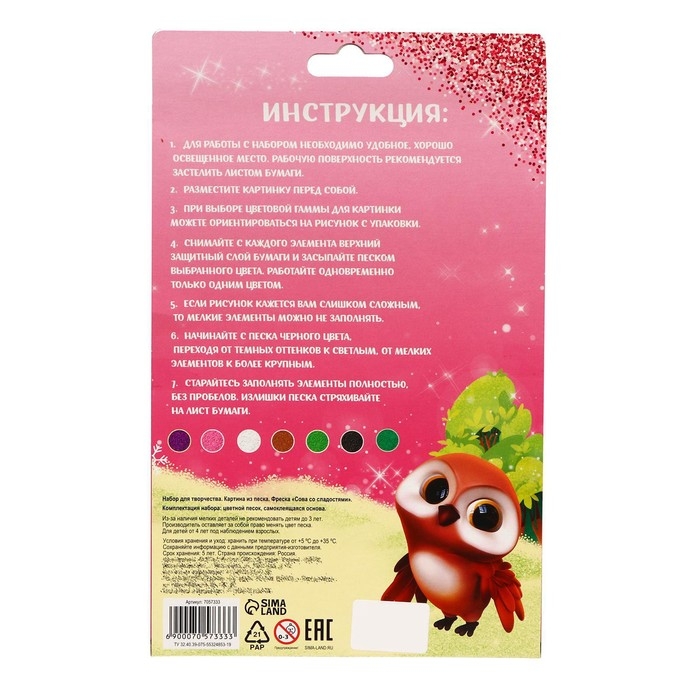 Фреска песком «Сова со сладостями», 7 цв