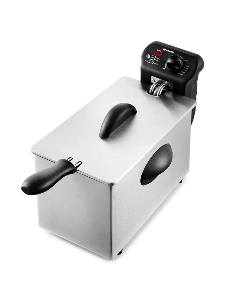 Во фритюрнице Kitfort КТ-2022 продукты жарятся в глубоком слое горячего масла. С помощью регулятора вы можете плавно устанавливать температуру приготовления.