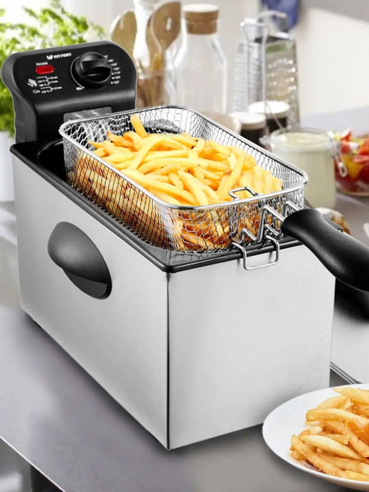 У фритюрницы есть защита от перегрева. При перегреве сработает термостат, который отключит фритюрницу от сети питания.
