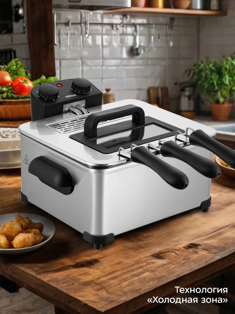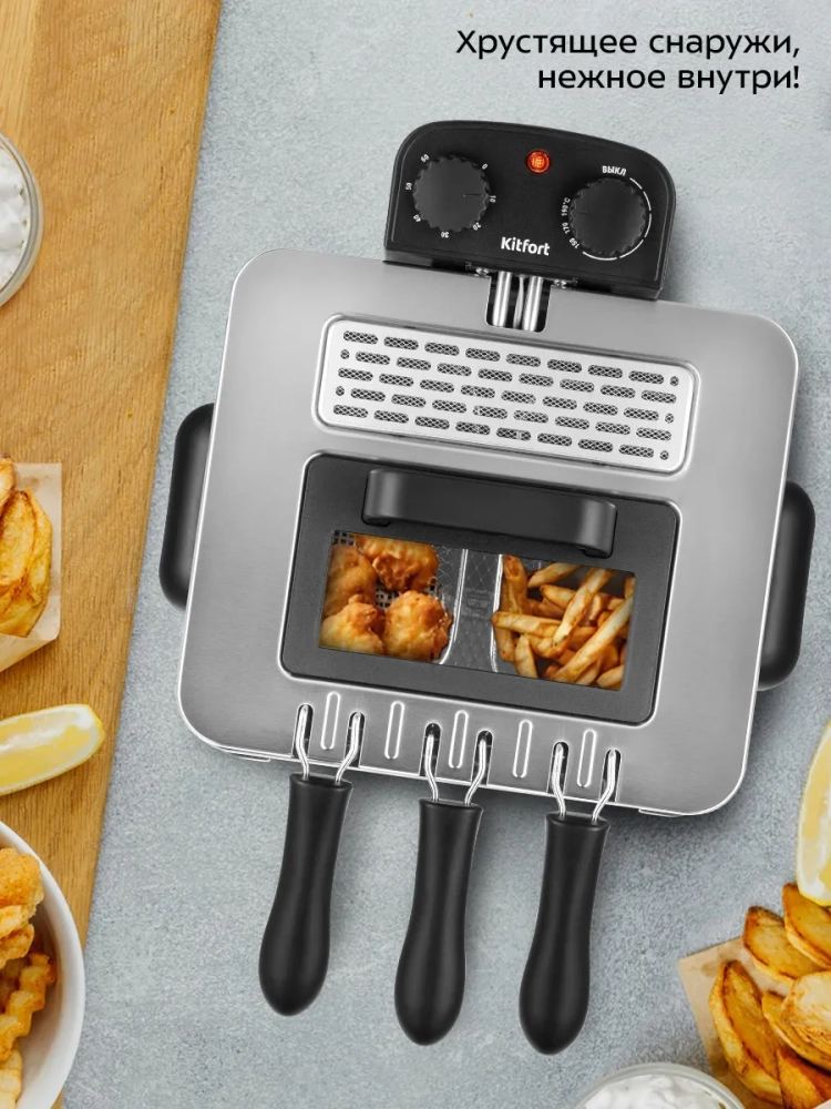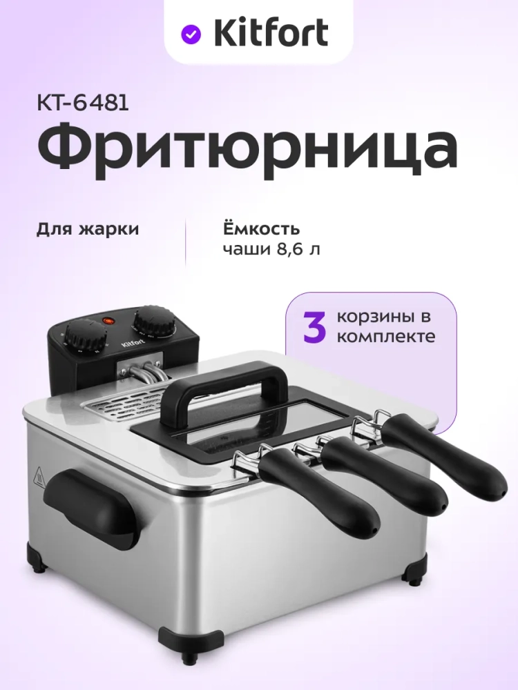 Фритюрница Kitfort КТ-6481 предназначена для приготовления продуктов в горячем масле. Прибор позволит вам в домашних условиях приготовить любимые блюда: картофель фри, пончики, чебуреки или куриные крылышки. Также во фритюрнице можно жарить овощи, рыбу, мясо и морепродукты в кляре и без.