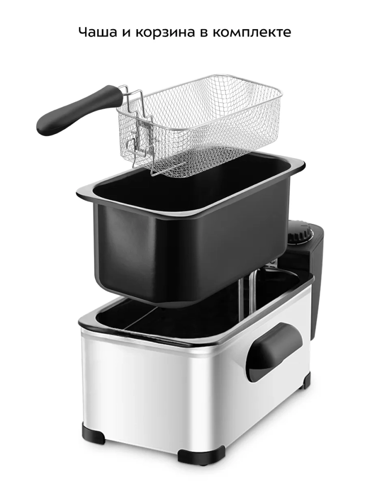 В комплекте есть корзина для жарки. Для удобства хранения ручка корзины съемная.