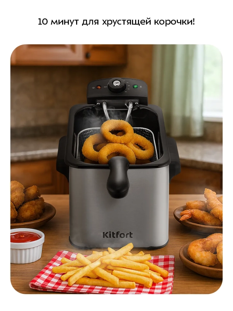 Фритюрница Kitfort КТ-6537 предназначена для приготовления продуктов в горячем масле. Прибор позволит вам в домашних условиях приготовить любимые блюда: картофель фри, пончики, чебуреки или куриные крылышки. Также во фритюрнице можно жарить овощи, рыбу, мясо и морепродукты в кляре и без.