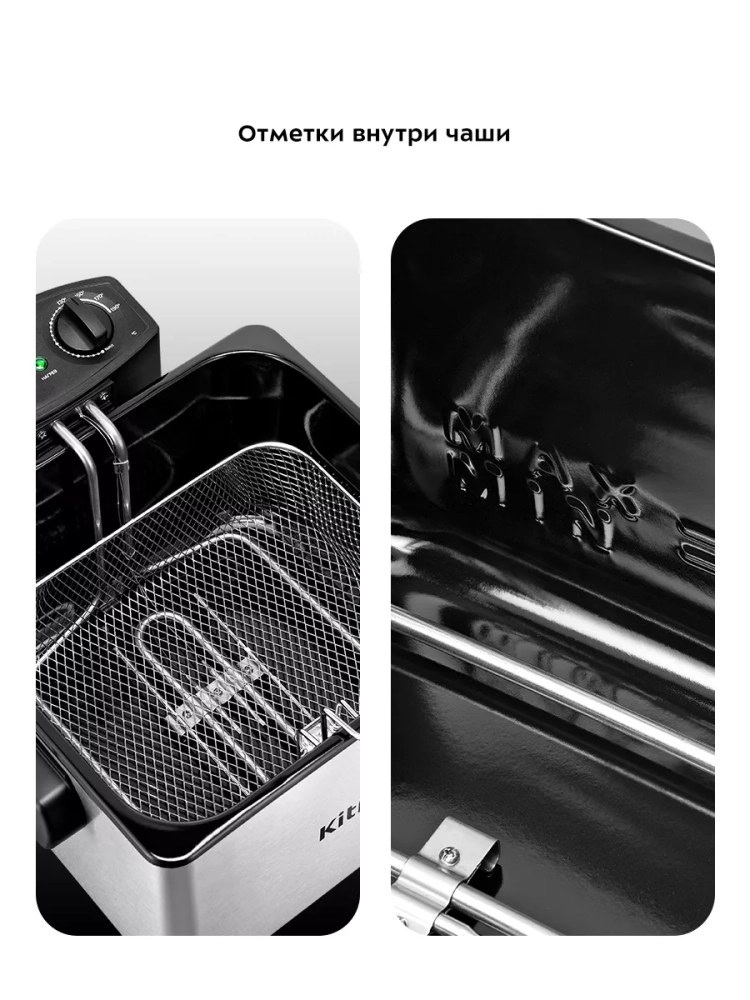 Фритюрница имеет съемную чашу, поэтому вам будет легко мыть прибор.