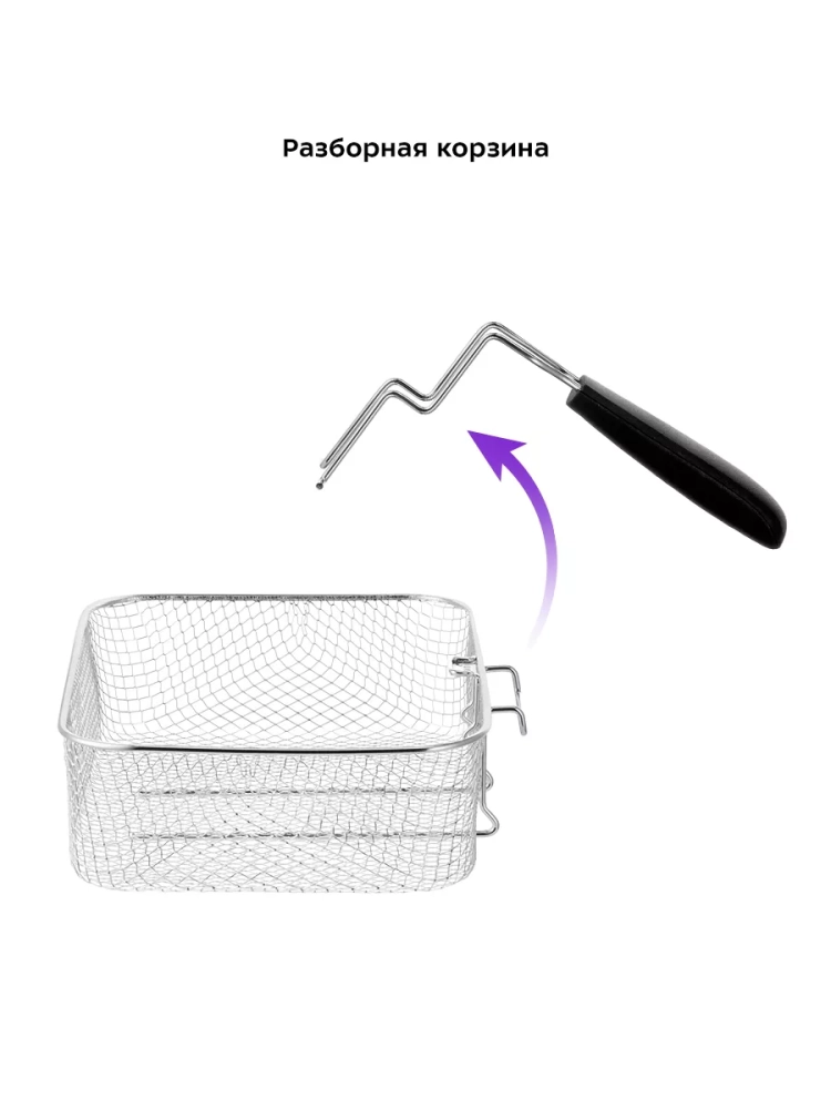 Для удобства хранения корзина для жарки имеет съемную ручку. Две ручки по бокам прибора позволяют легко переносить фритюрницу.