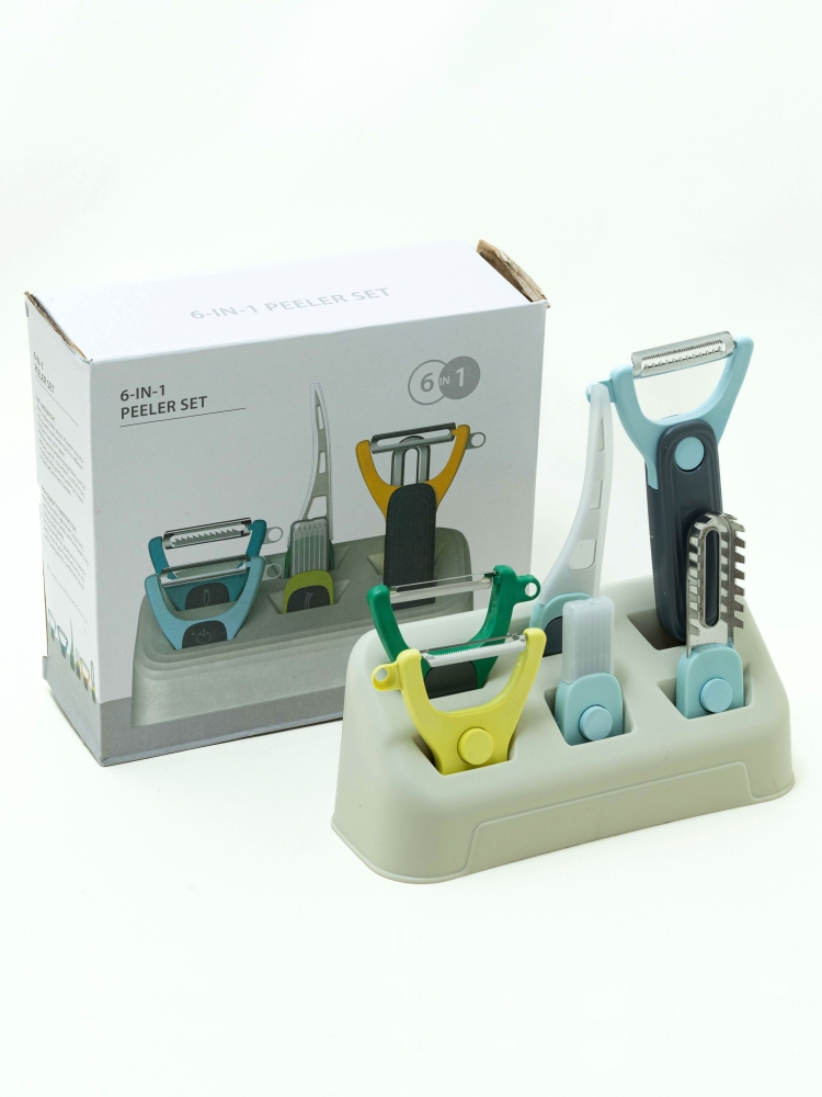 Продукты питания обладают различной жёсткостью, у овощей и фруктов кожура разной толщины, а чистить рыбу и вовсе долго и утомительно. Чтобы облегчить работу и сэкономить место на кухне, мы предлагаем вам уникальный и многофункциональный набор овощечисток, который станет незаменимым помощником на вашей кухне! Набор овощерезок состоит из 6 высококачественных сменных насадок, которые крепятся к удобной съёмной ручке. Овощечистка ручная поможет легко и быстро очистить, нарезать и даже измельчить различные овощи, фрукты, морепродукты и даже зеленый лук. Овощечистка с плоским лезвием идеально подойдет для очистки яблок, моркови и картофеля, а зазубренное лезвие – для киви, помидоров и других мягких плодов. Ножи для измельчения справятся с любыми фруктами и овощами, а нож для рыбы (чистилка для рыбы) и нож для морепродуктов позволят приготовить изысканные блюда, сэкономив достаточно времени! Благодаря универсальной ручке, вы сможете легко менять лезвия и обрабатывать различные продукты без лишних усилий. В комплекте также идет удобный органайзер для хранения набора на кухне. Овощечистка слайсер легко нарежет фрукты и овощи, очистит их от кожуры без особых усилий. Овощечистка металлическая проста в уходе – после использования достаточно промыть под проточной водой. Овощерезка имеет лаконичный дизайн и яркие расцветки, что сделает её заметной на любой кухне. Чистилка для овощей поставляется в красивой упаковке, что сделает её отличным подарком для любого кулинара. Заказывайте кухонный набор в нашем магазине и наслаждайтесь легкостью и удобством в процессе приготовления разнообразных блюд, которые подарит вам овощечистка ручная для овощей!