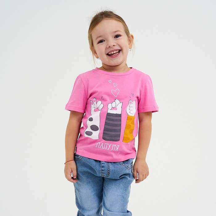 Футболка детская KAFTAN "Лапуля" размер 28 (86-92), розовый
