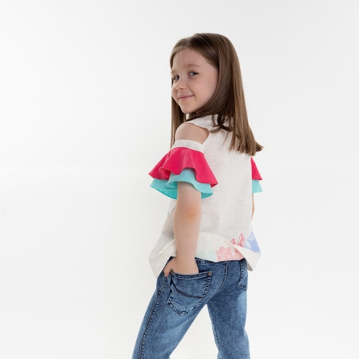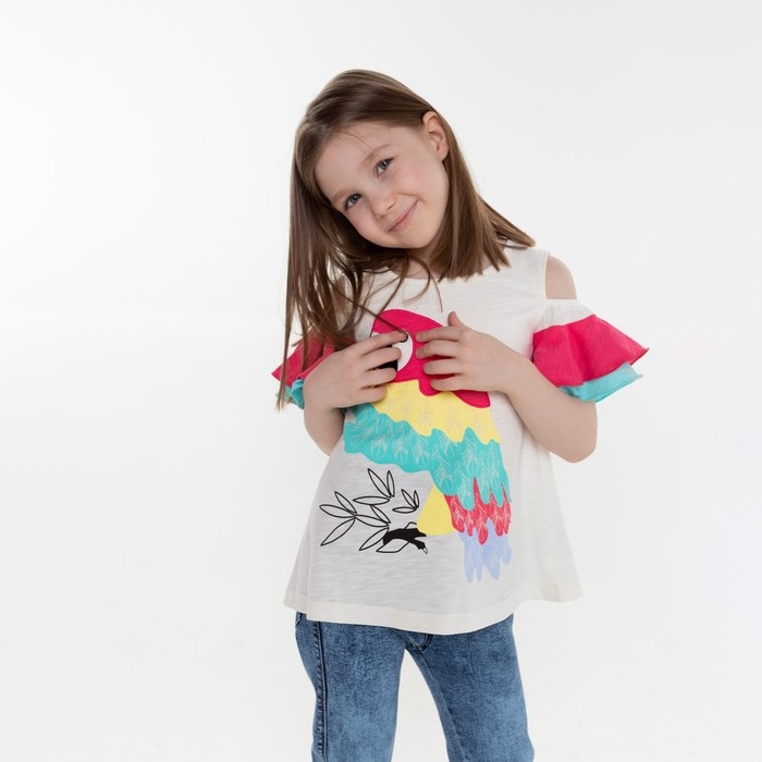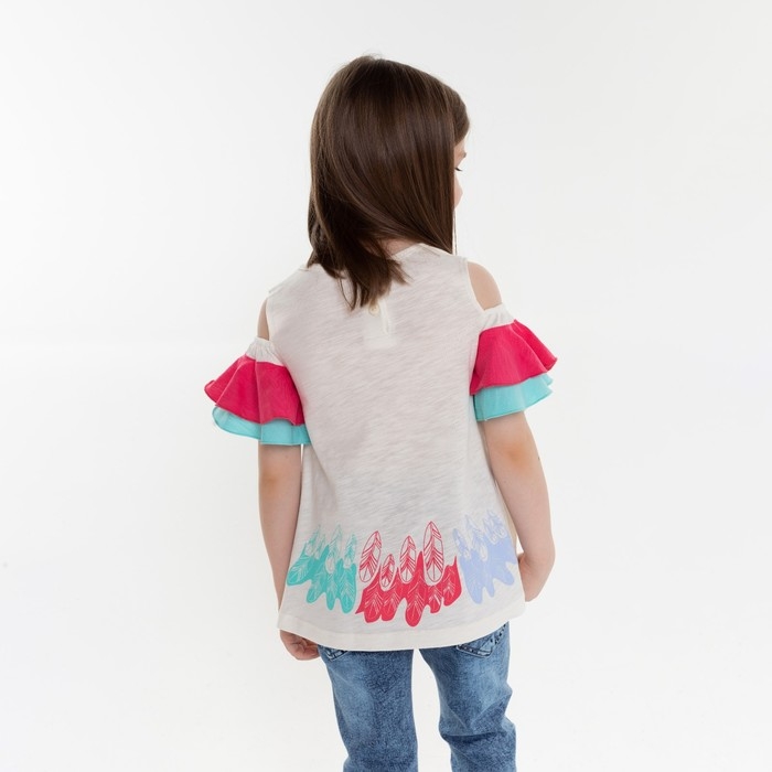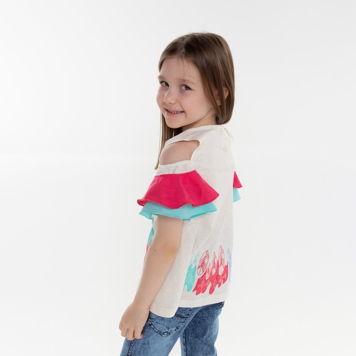 Футболка для девочки, цвет бежевый/коралловый, рост 104 см