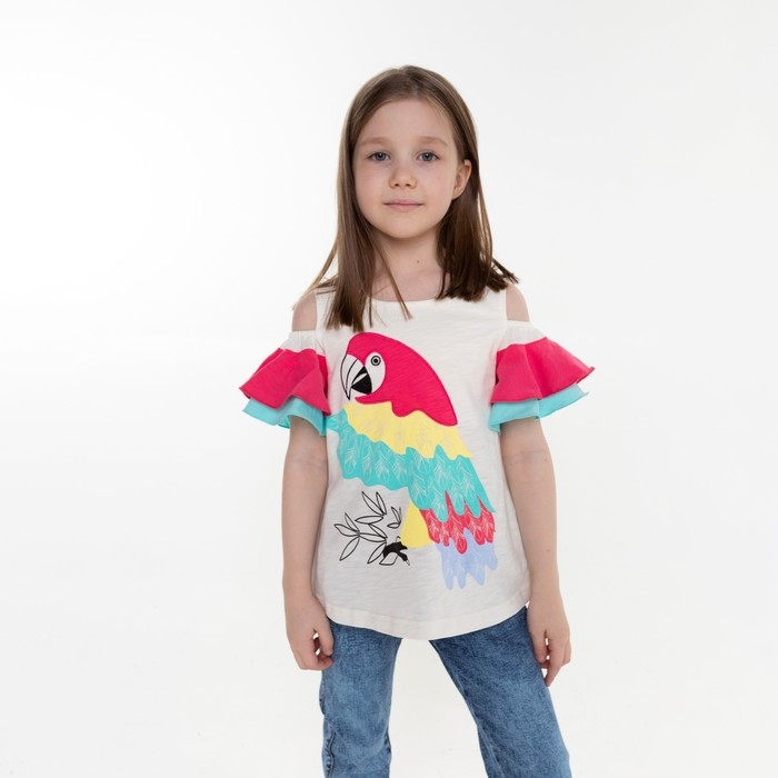 Футболка для девочки, цвет бежевый/коралловый, рост 110 см