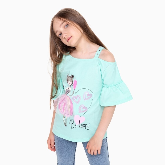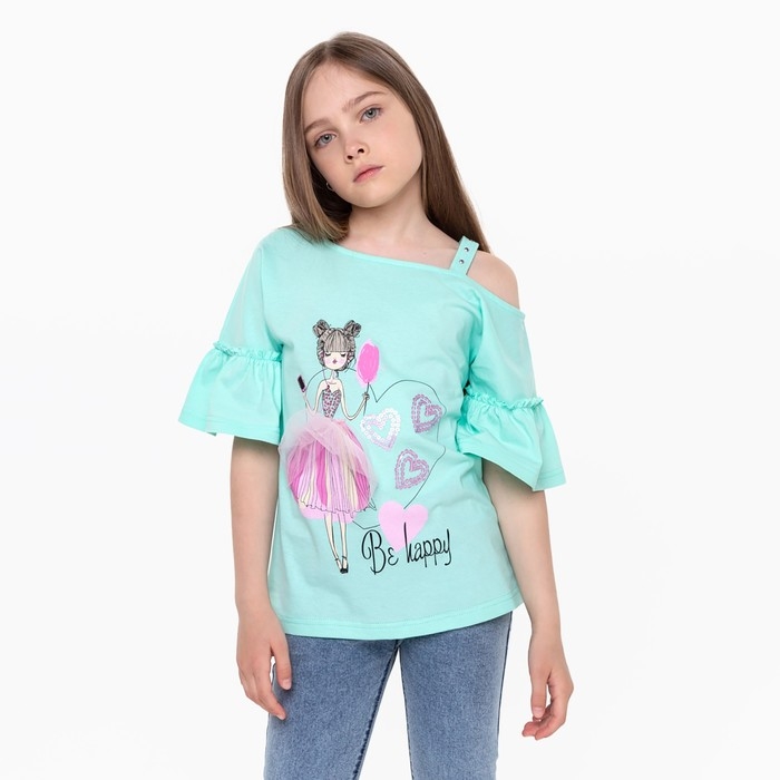 Футболка для девочки, цвет мятный, рост 110 см