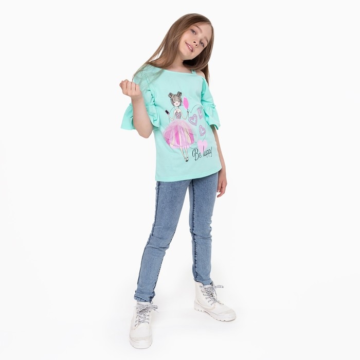 Футболка для девочки, цвет мятный, рост 116 см