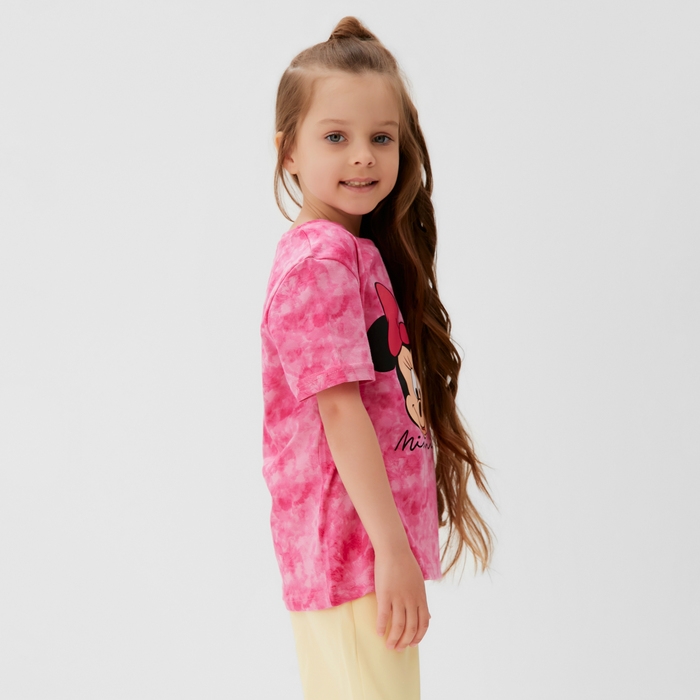 Футболка для девочки "Minnie", Минни Маус, «Тай-дай», рост 122-128 см, цвет розовый