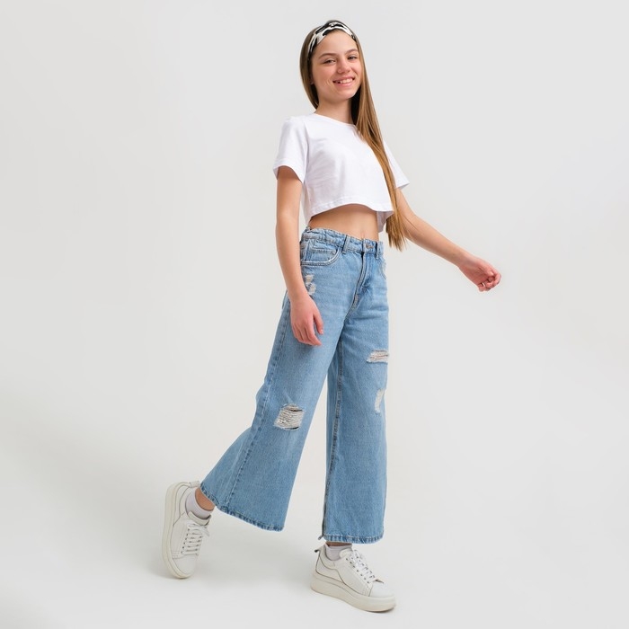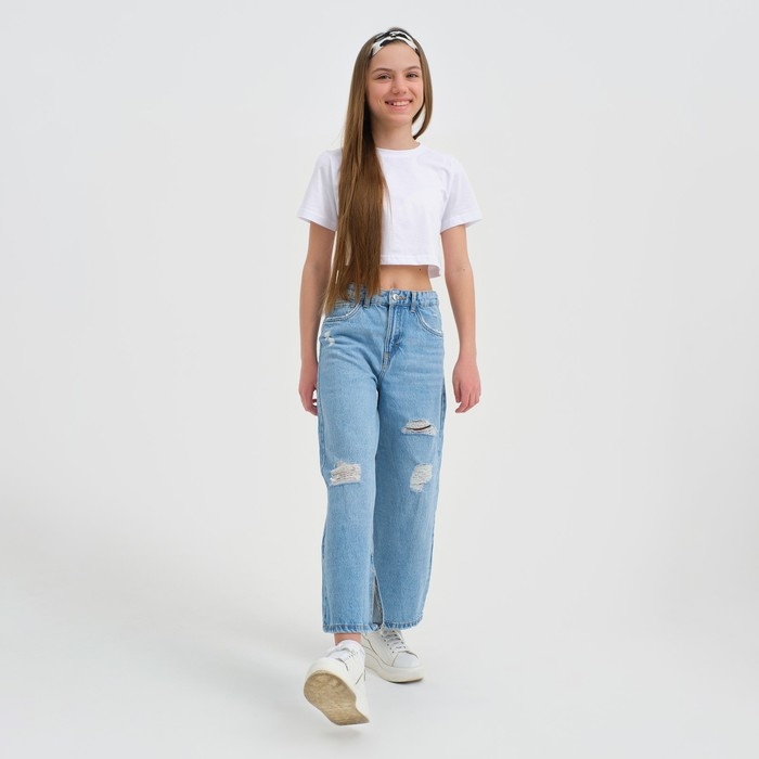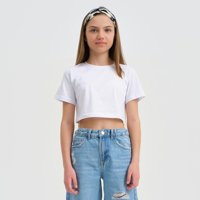 Футболка для девочки укороченная KAFTAN "Selfie", рост 146-152, цвет белый