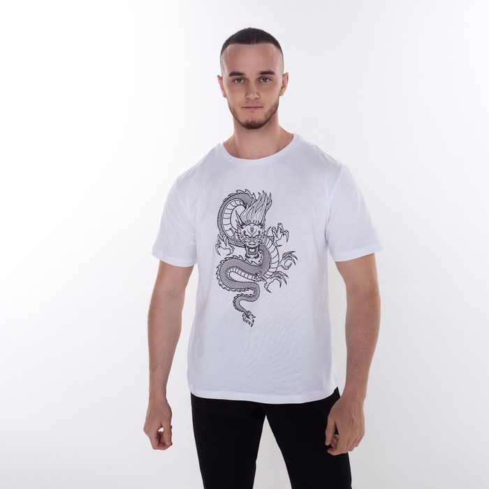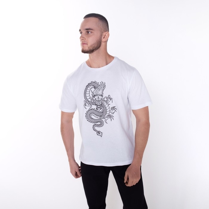 Футболка мужская «Дракон», цвет белый/принт чёрный, размер 48