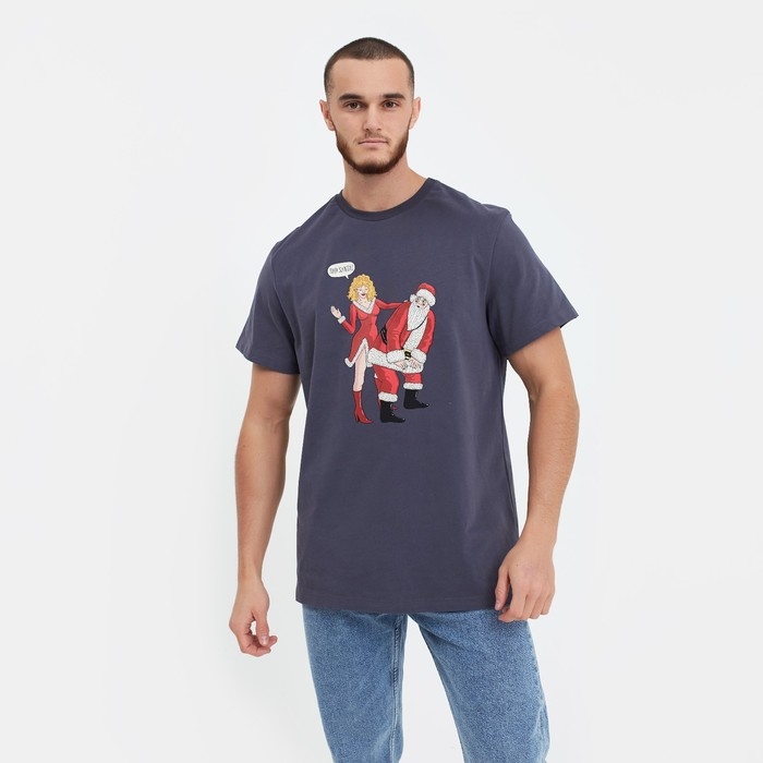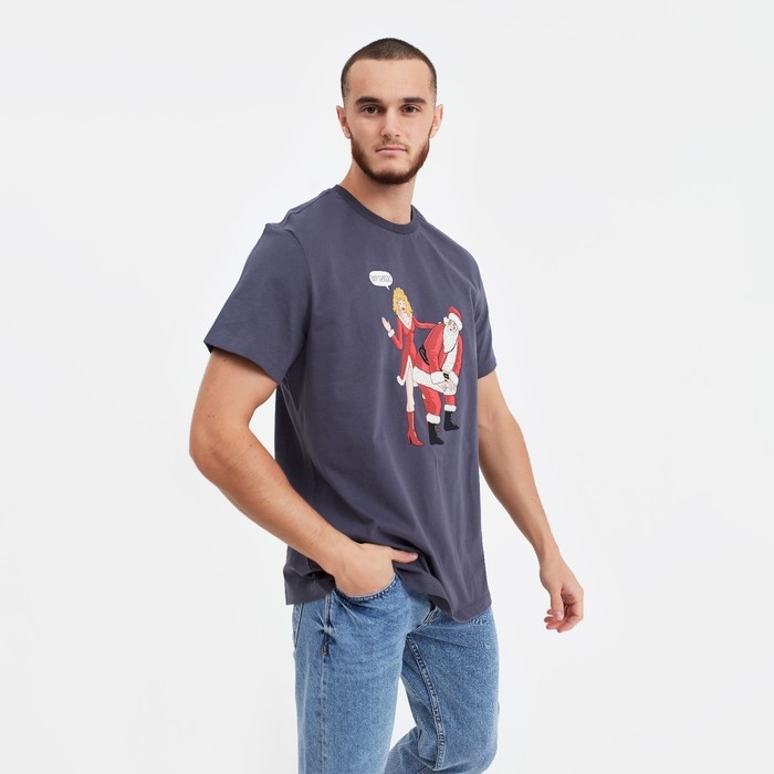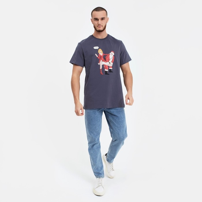 Футболка мужская новогодняя , цвет графит, размер 50