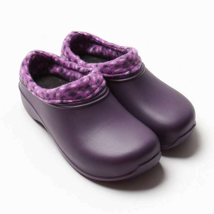 Галоши женские утепленные "Коро с отворотом" цвет баклажан/леопард чёрно-фиолет, размер 39