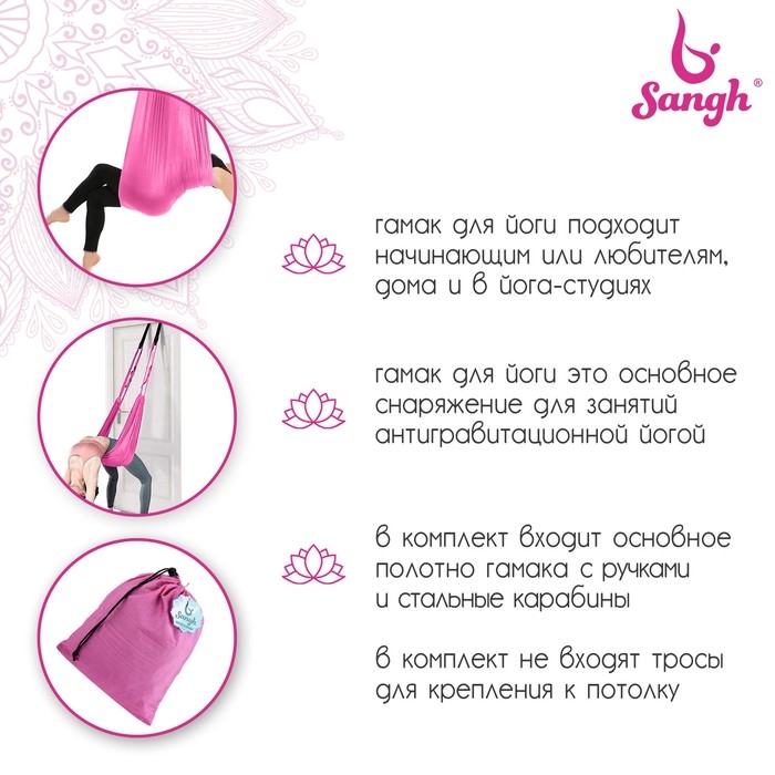 Гамак для йоги Sangh, 250×140 см, цвет розовый