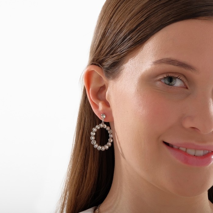 Гарнитур 2 предмета: серьги, кулон «На леске» классика, цвет белый в золоте, 30 см