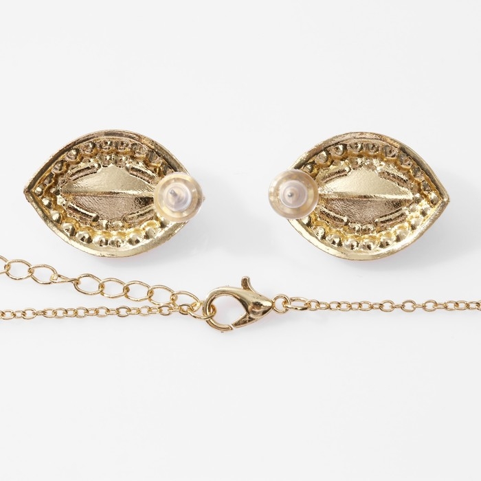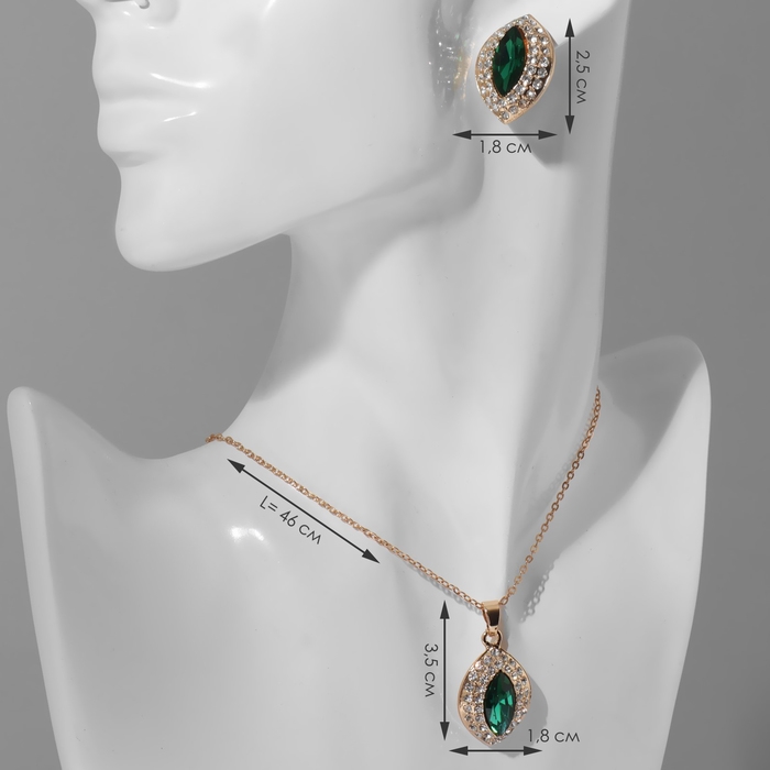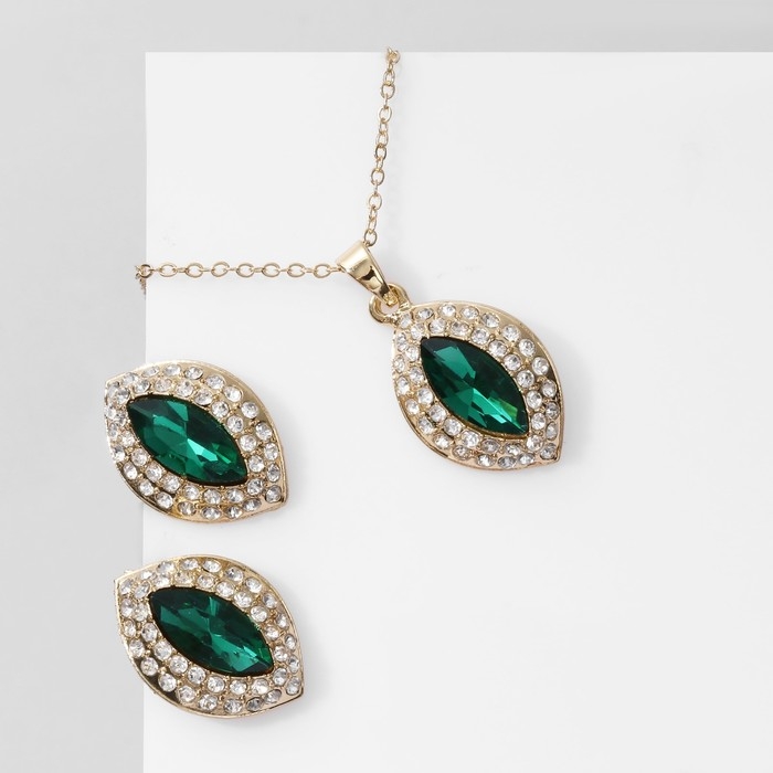 Гарнитур 2 предмета: серьги, кулон «Эдель» трио миндаль, цвет изумрудно-белый в золоте, 50 см