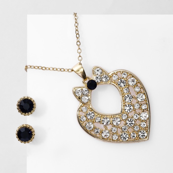 Гарнитур 2 предмета: серьги, кулон «Сердце» леди, цвет сине-белый в золоте, 48 см