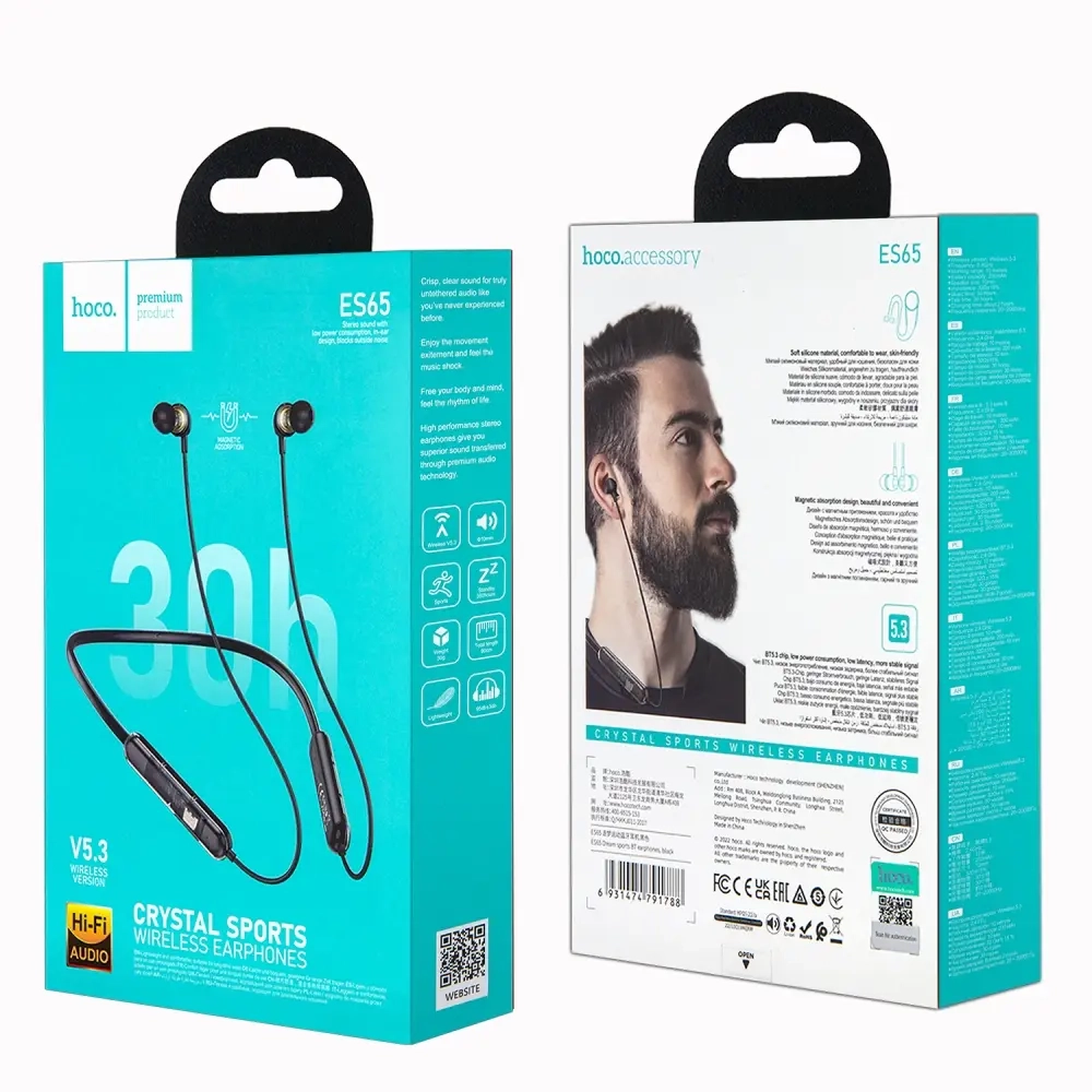Гарнитура ES65 Bluetooth Sport Wireless Earphones HOCO черная