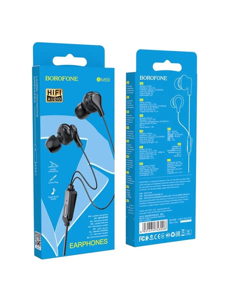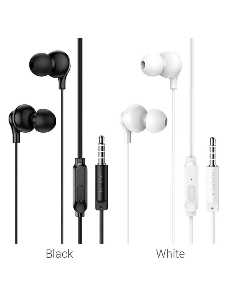 Borofone BM59 Collar – стильные наушники с вкладышами эргономичной формы. Подключаются к гаджетам в разъем 3.5 мм. Вкладываются точно внутрь уха, располагаются не так близко к барабанной перепонке, как внутриканальные, и не вызывают дискомфортных ощущений при продолжительном ношении. Наушники позволяют не только слушать музыку и аудиокниги, но и ответить на телефонный звонок.