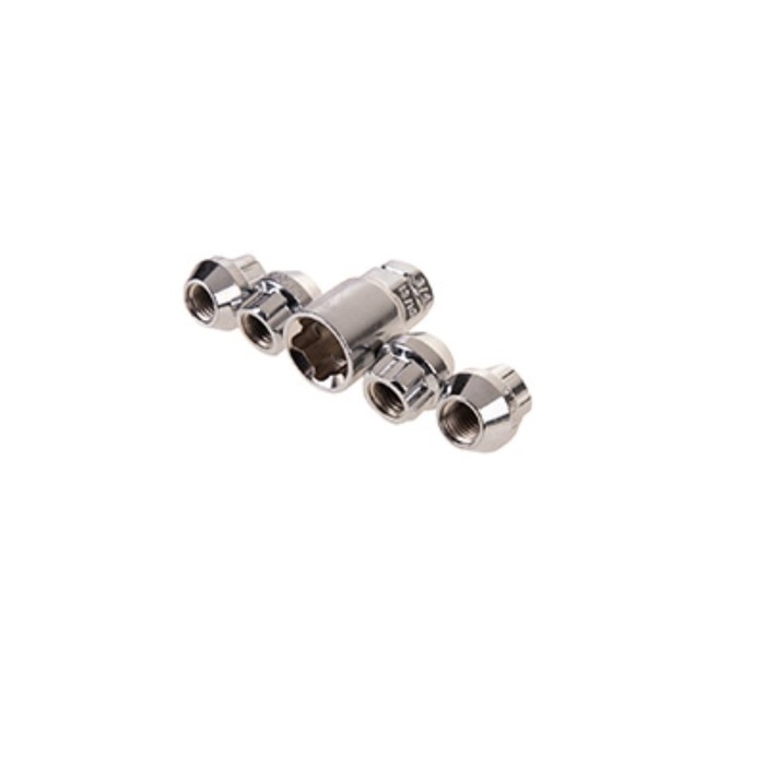 Гайки секретки Skyway, M12х1.50 21мм, конус открытый, 5 луч, 1 кл, хром, 4 шт