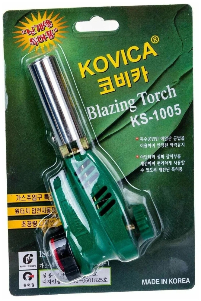 Портативная профессиональная газовая горелка с пьезоподжигом № KS-1005, цвет зеленый.