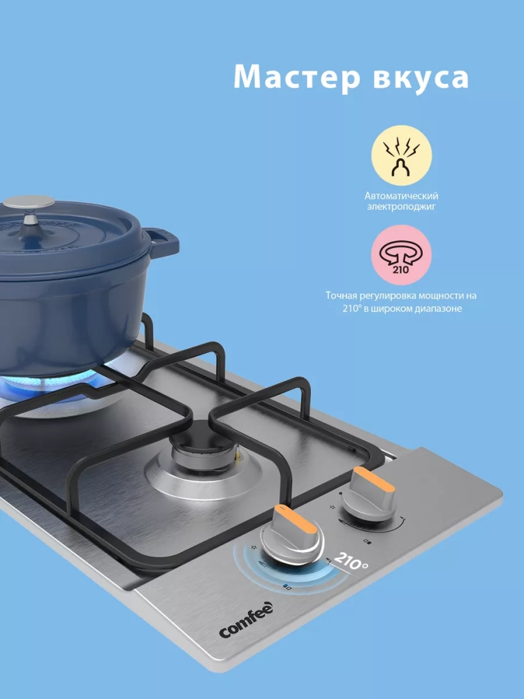 Встраиваемая газовая варочная панель Comfee CGH301X - отличный выбор для тех, кто ценит надежность и функциональность.