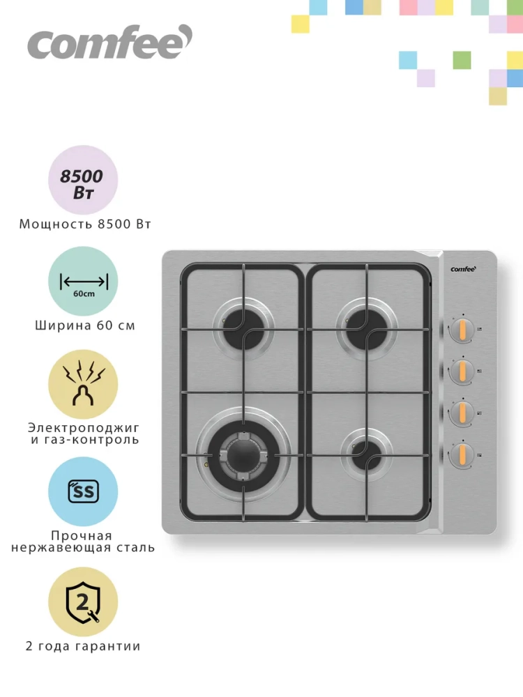 Встраиваемая газовая варочная панель Comfee CGH603X является отличным выбором для тех, кто ценит надежность, качество и безопасность.