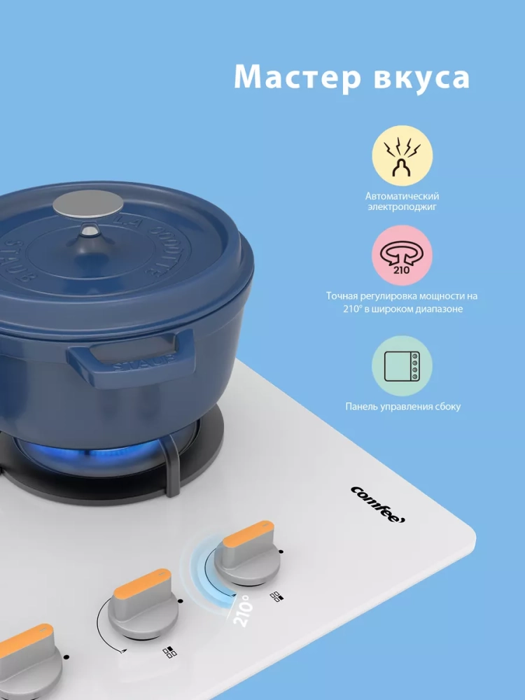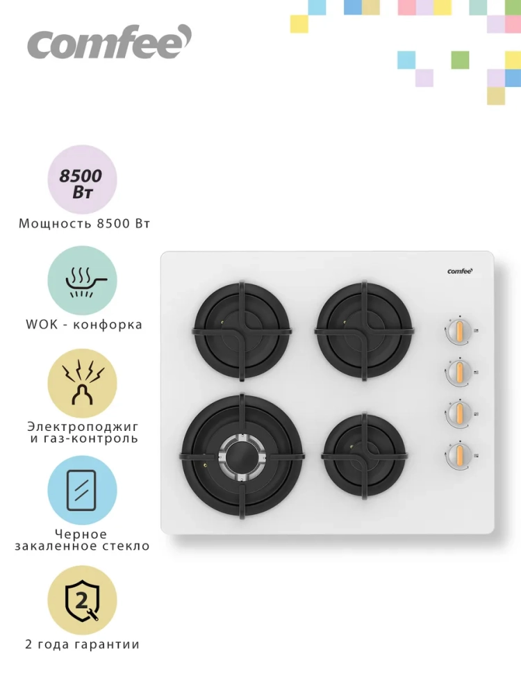 Встраиваемая варочная газовая панель Comfee CGH612GW - это идеальное решение для современной кухни, которое позволит вам готовить разнообразные блюда с максимальным комфортом и безопасностью.