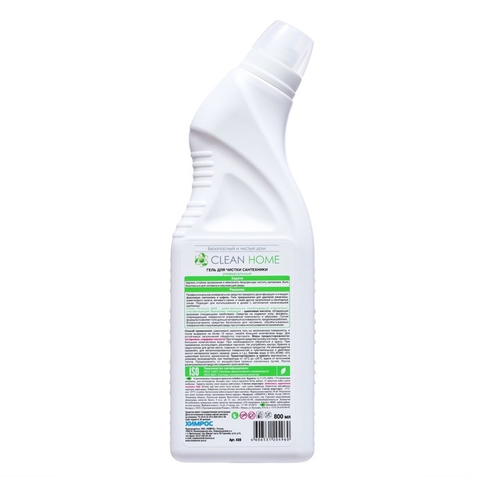 Гель для чистки сантехники Clean home, 800 мл