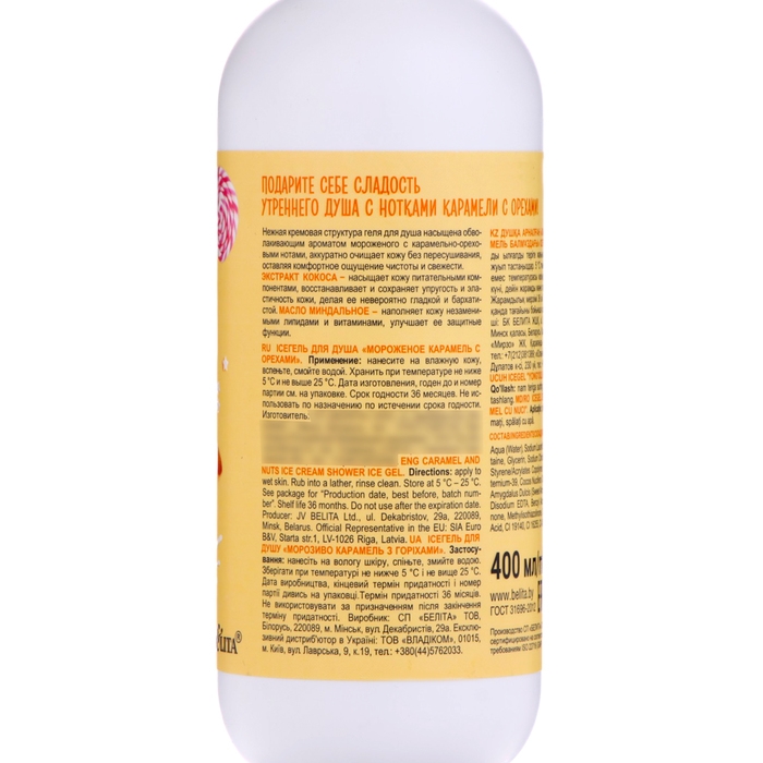 Гель для душа BIELITA "Мороженое карамель с орехами", 400 мл