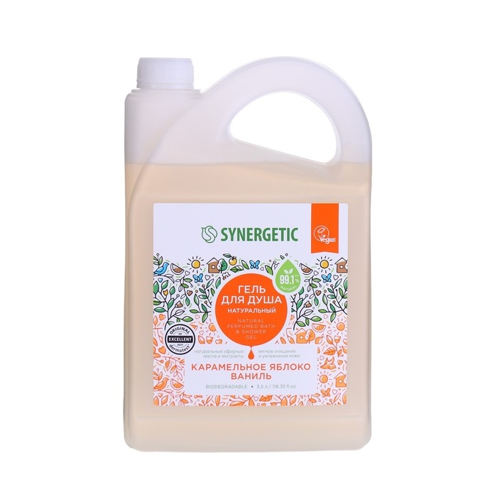 Гель для душа биоразлагаемый SYNERGETIC карамельное яблоко и ваниль, 3,5 л