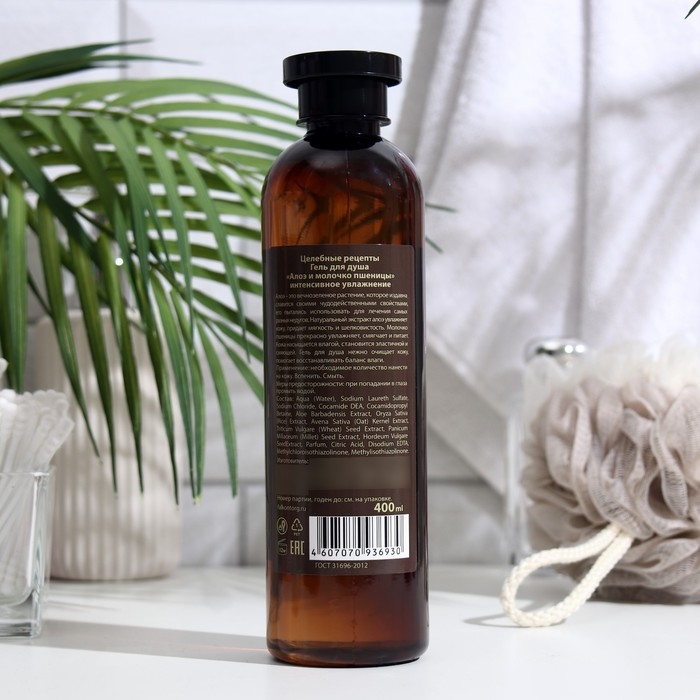 Гель для душа Целебные рецепты "Алоэ и молочко пшеницы", 400 мл