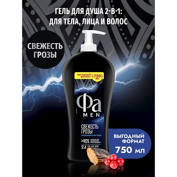 Гель для душа Fa Men «Энергия Полинезии. Свежесть грозы», 750 мл