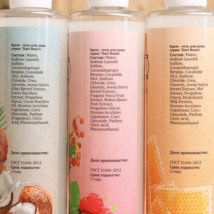 Гель для душа "Кокос, Ягоды, Мёд", 3 шт по 400 мл + 2 мочалки
