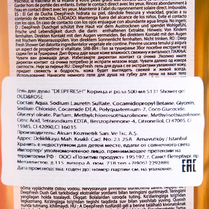Способ применения: небольшое количество геля вспеньте в руках или мочалкой, нанесите на кожу, помассируйте и тщательно смойте.