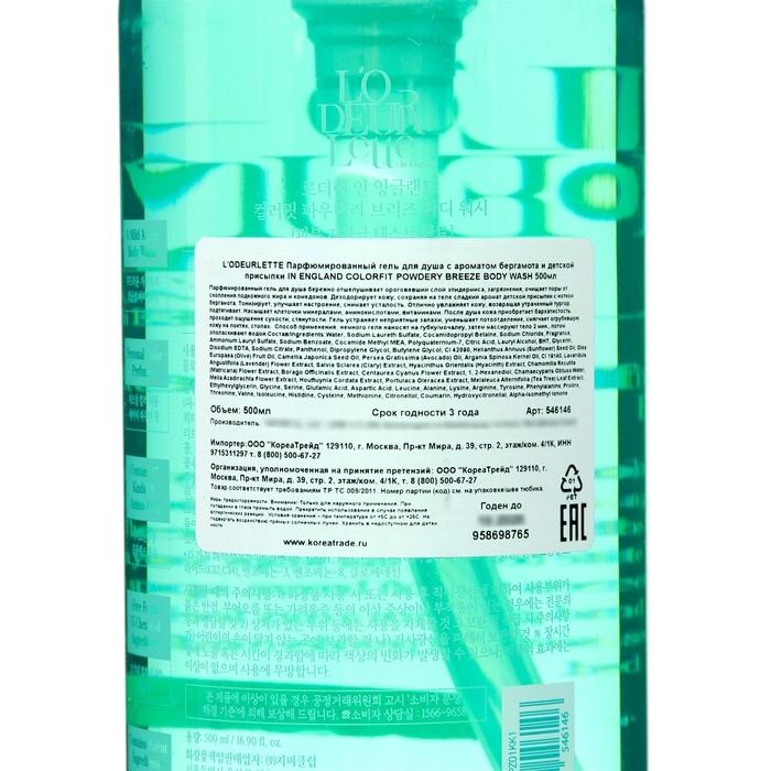 Гель для душа L'odeurlette In England c ароматом бергамота и детской присыпки, 500 мл