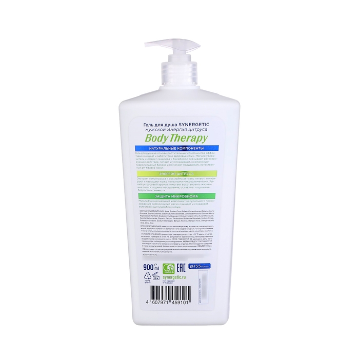 Мужской гель для душа SYNERGETIC «Энергия цитруса» BODY THERAPY - это деликатное и эффективное средство для очищения кожи. Гель для душа на основе растительных компонентов эффективно очищает и заботится о здоровье кожи.