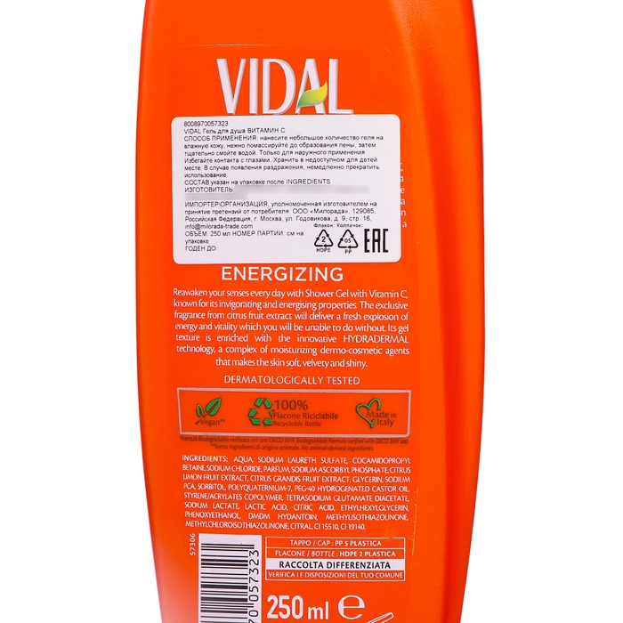 Гель для душа VIDAL с витамином С, 250 мл
