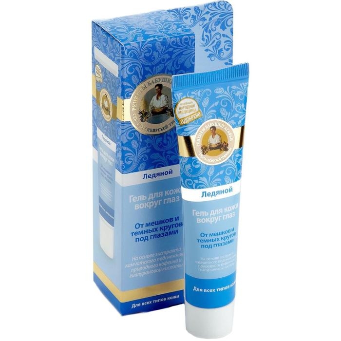 Гель для кожи вокруг глаз «Рецепты бабушки Агафьи» «Ледяной» дарит ощущение лёгкой прохлады и активно борется с тёмными кругами и мешками под глазами.