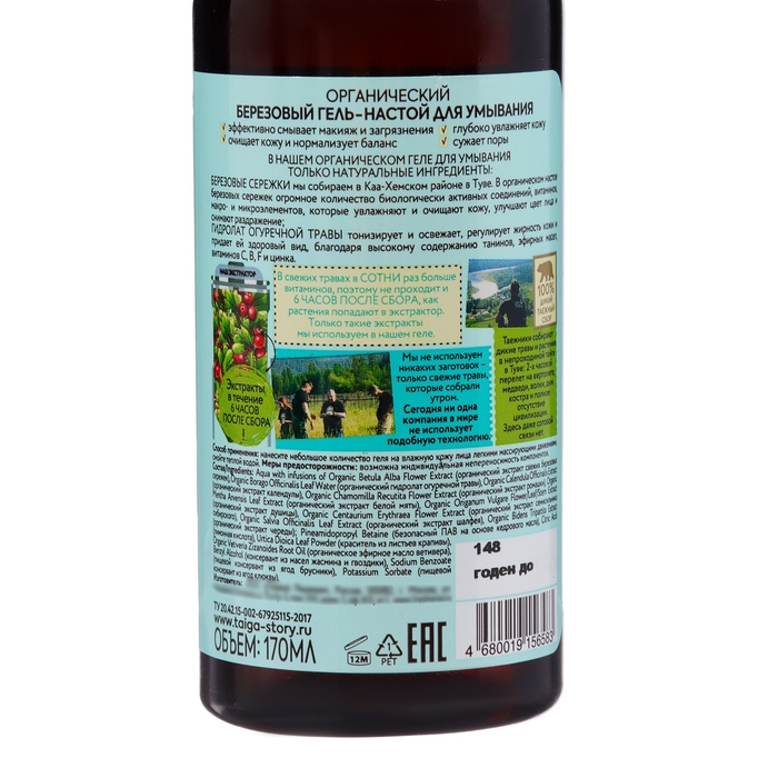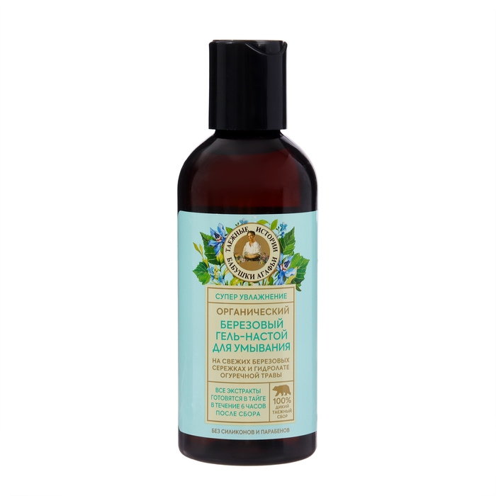 Гель-настой для умывания Рецепты бабушки Агафьи «Берёзовый органический» - это эффективное средство для очищения кожи лица. Он содержит органический экстракт березы, который обладает противовоспалительным и антисептическим действием, а также помогает увлажнить и смягчить кожу.