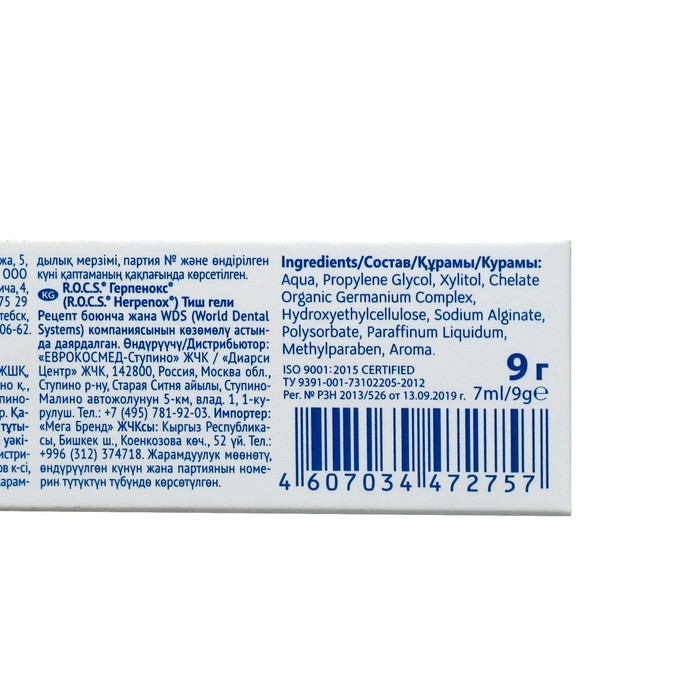Гель стоматологический R.O.C.S. Герпенокс, предупреждает развитие герпеса и воспалений, 9 г