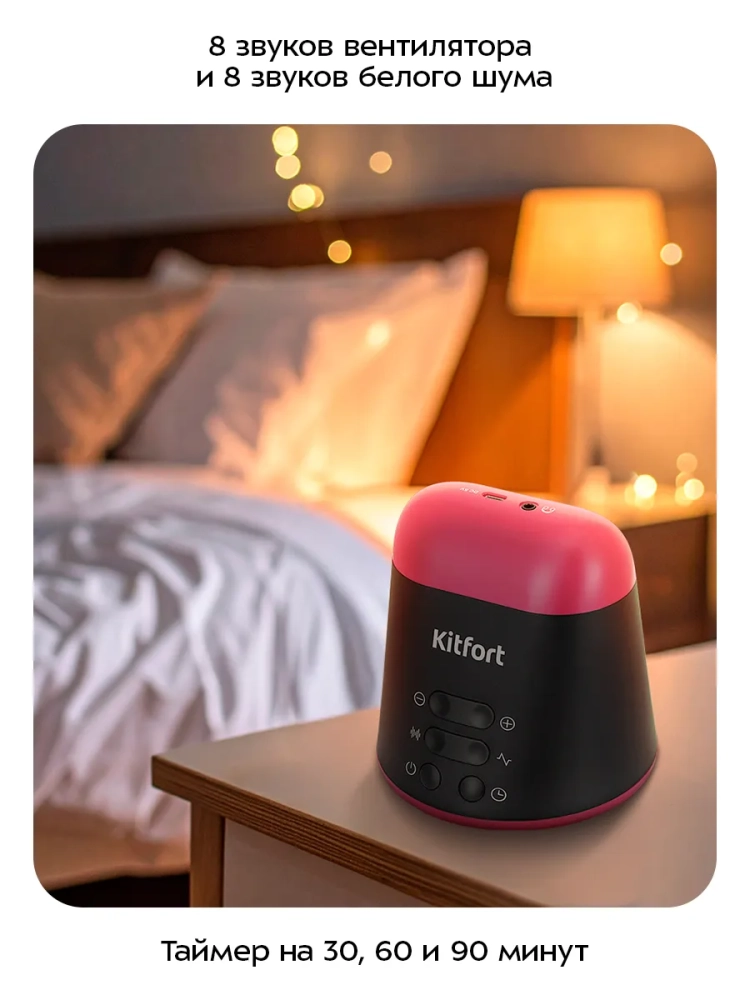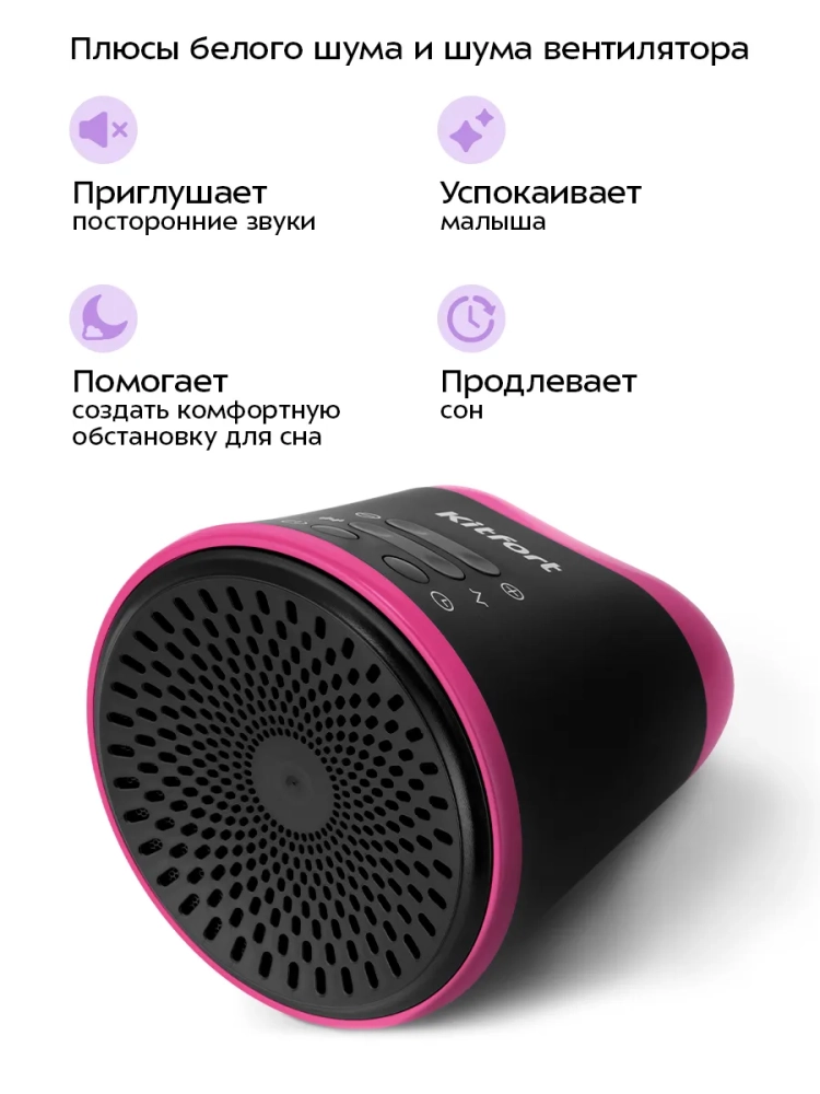 Генератор белого шума Kitfort KT-3750 — это прибор, который создает монотонный звук с широким частотным диапазоном от 180 Гц до 20000 Гц.