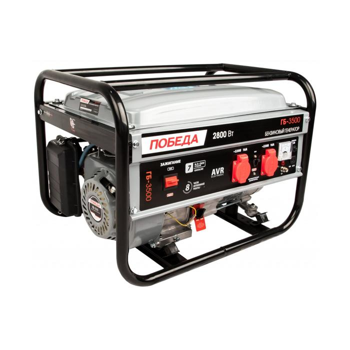 Генератор бензиновый "Победа" ГБ3500, 4Т, 2.8 кВт, 2х220/12 В, 15 л, ручной стартер