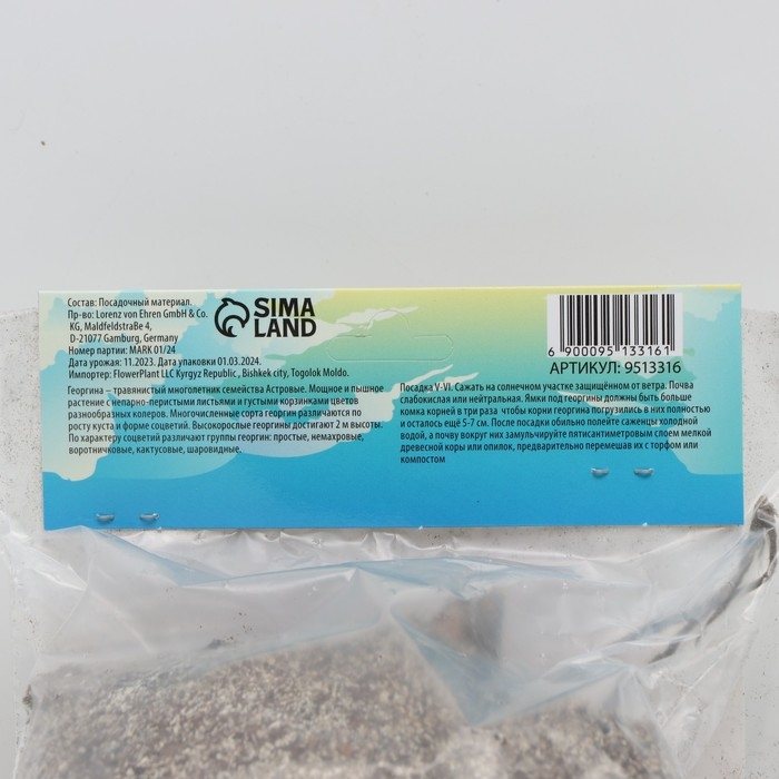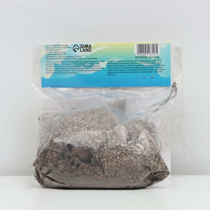 Почва: богатый перегноем жирный садовый суглинок, рН 6,5-6,7. Хороша для георгинов и удобренная песчаная почва. Участок, предназначенный под георгины, с осени вскапывают, а весной перекапывают. Посадочный материал обычно высаживают в грунт, когда минует угроза возвратных заморозков. В ямы размером 30 х 30 х 30 см, насыпают заранее подготовленный субстрат и комплексное минеральное удобрение. В зависимости от высоты, расстояние между растениями в ряду — 60–90 см. При правильной посадке корневая шейка должна быть на 2-3 см ниже уровня почвы. После посадки растения обильно поливают.