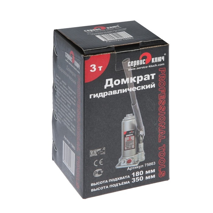 Гидравлический бутылочный домкрат СЕРВИС КЛЮЧ, 75003, высота 180 - 350 мм, 3 т