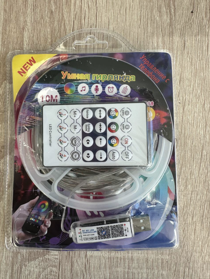 Гирлянда новогодняя на стену умная c пультом, 10 метров