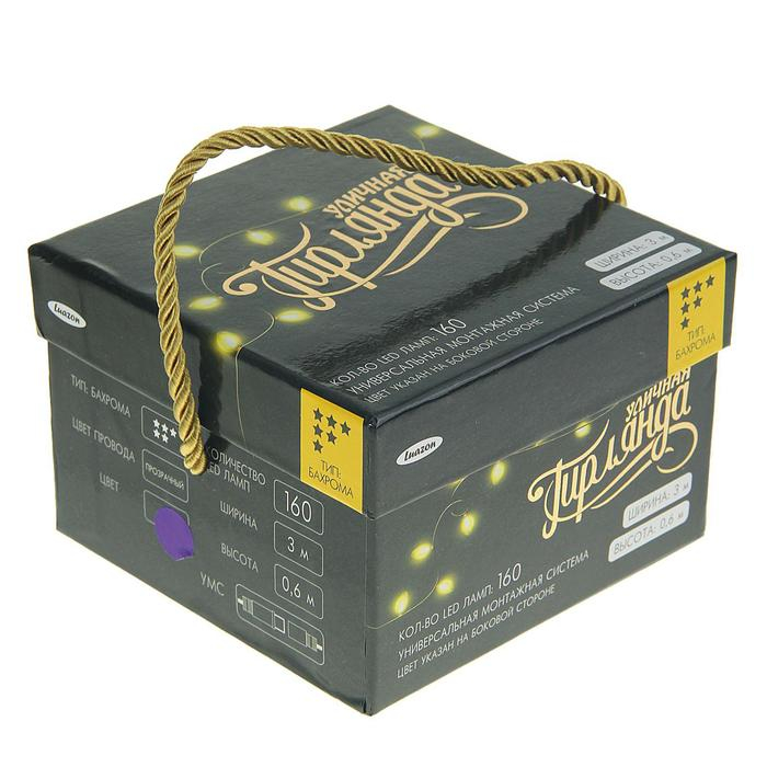 Гирлянда «Бахрома» 3 × 0.6 м, IP44, УМС, прозрачная нить, 160 LED, свечение фиолетовое, 220 В